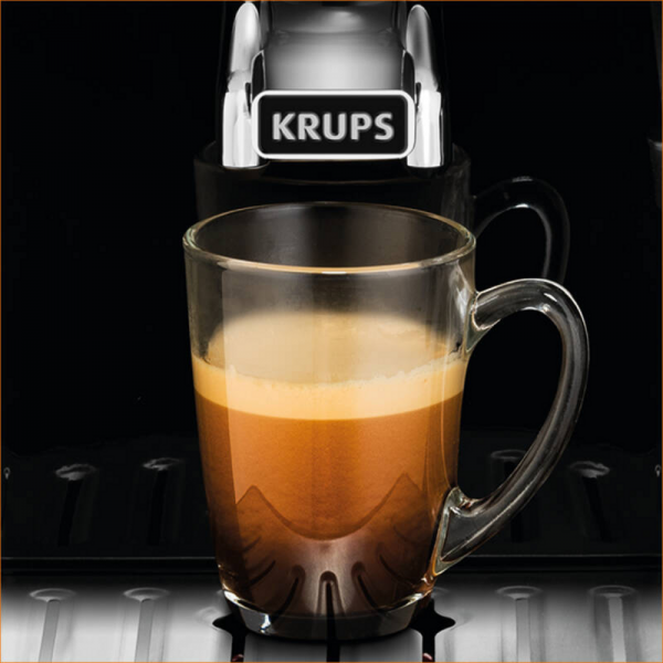 - Automatyczny ekspres Krups przygotowuje kawę wyłącznie ze świeżo mielonych ziaren, zachowując ich aromat i pełnię smaku.