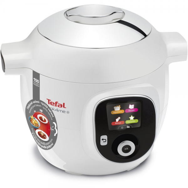 Tefal CY851130 Cook4Me garnek wielofunkcyjny 6 l, moc 1 600 W, gotowanie pod ciśnieniem, gotowanie na parze, pieczenie i smażenie, programy automatyczne, wyświetlacz, timer, opóźniony start, podtrzymywanie temperatury, wyjmowana misa, termostat, kosz do gotowania na parze w zestawie, kolor biały.