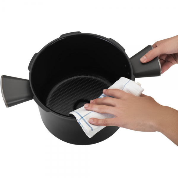 - W zestawie znajduje się kosz do gotowania na parze, który umożliwia delikatne przygotowanie warzyw, ryb i innych potraw bez zbędnego tłuszczu. Zachowuje naturalny smak i wartości odżywcze.