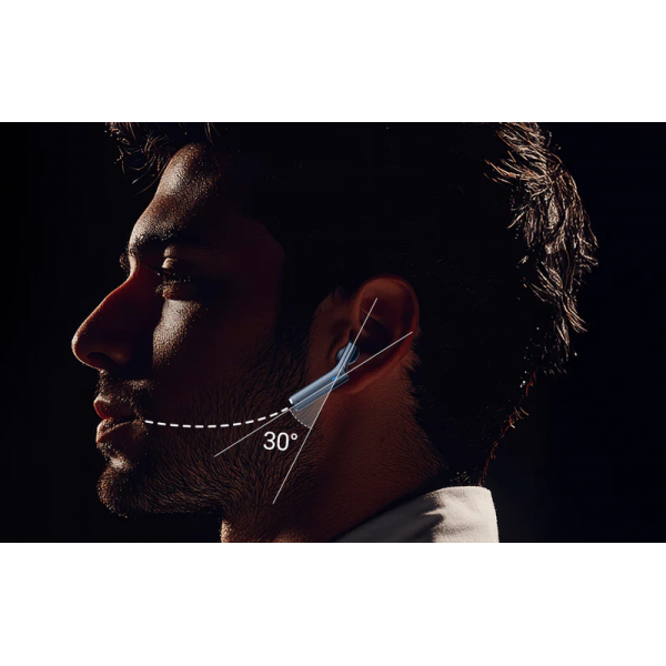 Oprócz klasycznego mikrofonu słuchawki wyposażone są w czujnik wibracji kostnej, który precyzyjniej rejestruje Twoje słowa i poprawia dokładność tłumaczenia. To rozwiązanie sprawdza się szczególnie w hałaśliwym otoczeniu, takim jak kongresy czy targi – zwiększając skuteczność rozpoznawania głosu do 90% przy poziomie hałasu 100 dB. Dodatkowo funkcja BoostClean izoluje szumy, a czterokanałowe przetwarzanie TurboFast filtruje dźwięki w czasie rzeczywistym. Udoskonalony kąt 30° naturalnie kieruje mikrofon w stronę ust, co pozwala uzyskać czysty i wyraźny dźwięk nawet w trudnych warunkach akustycznych.