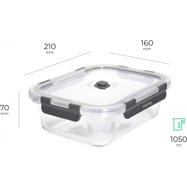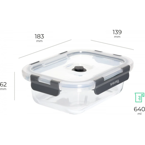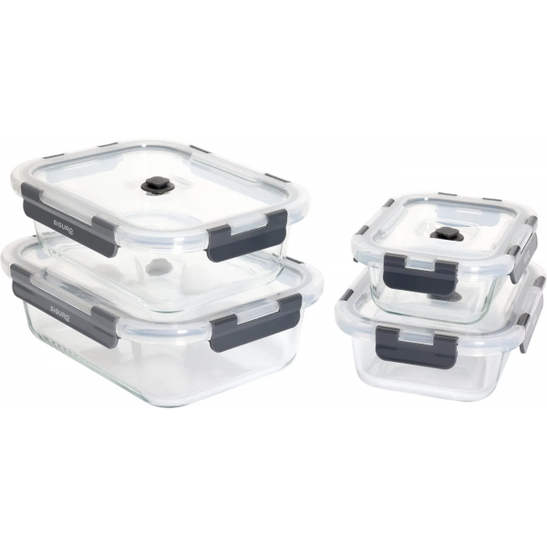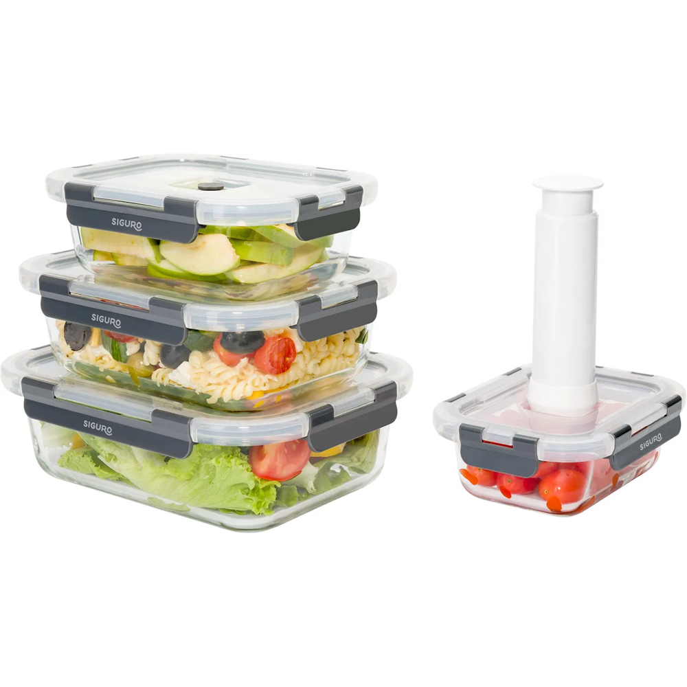 Zestaw szklanych pojemników do pakowania próżniowego Siguro 0,37 l + 0,64 l + 1,05 l + 1,52 l + pompka